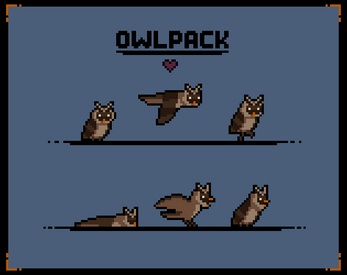 A pixel-art owl character asset pack for 2D sidescrollers and platformers.