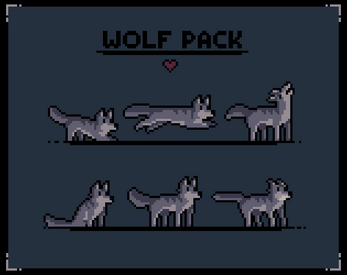 A pixel-art wolf character asset pack for 2D sidescrollers and platformers.